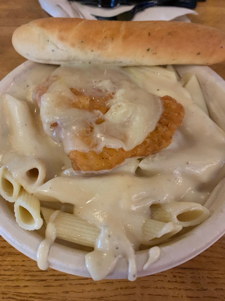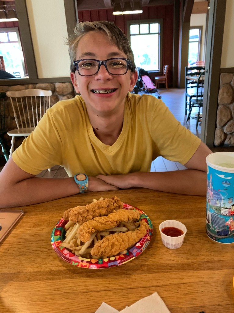 Na een tijdje besluit Merlijn om nog even naar de Studio’s te gaan en wij blijven bij het resort. Bij het zwembad doen we een spelletjes uno flip it en rond 18.30 gaan we eten bij het restaurant van het resort. Kay had de chicken-stripes, Ruud zalm met boontjes en aardappelen en ik genoot van pasta chicken parmesan met alfredo saus.
